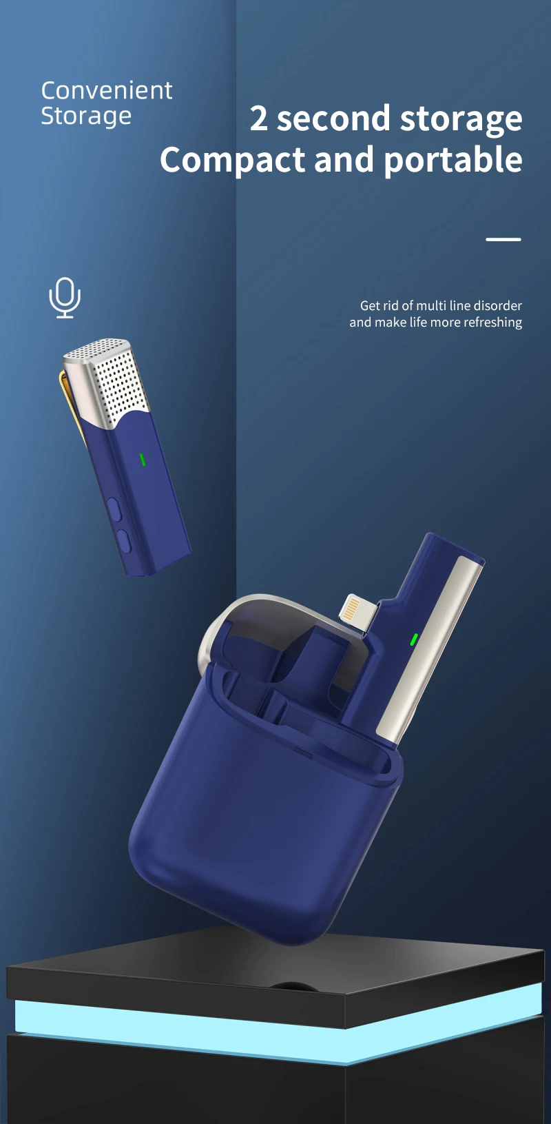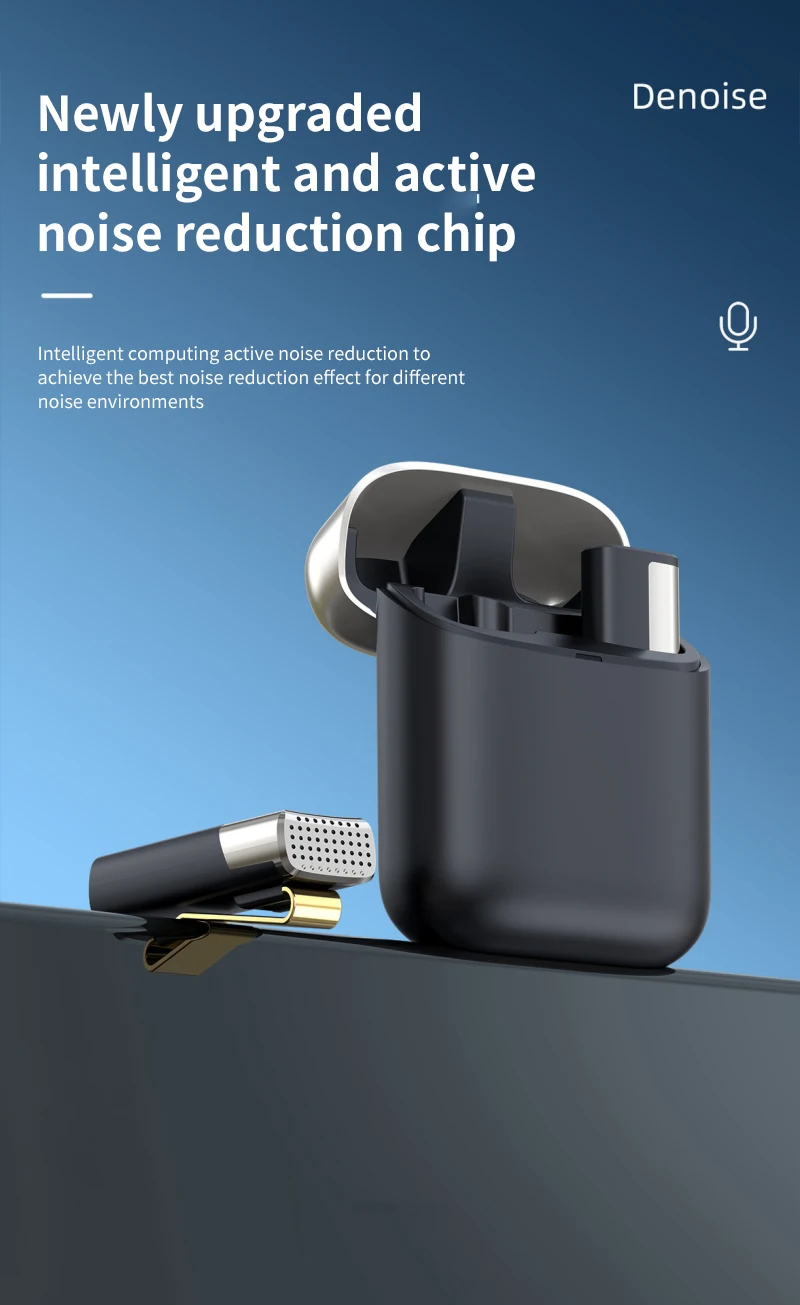 Новый беспроводной микрофон Lavalier Мини Портативный шумоподавление Аудио Видео Запись микрофон для iPhone Android с зарядной коробкой