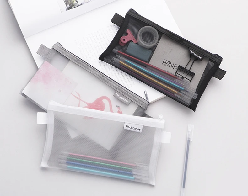 Прозрачный сетчатый мешок для ручки, содержимое внутри прозрачно, и это удобно и