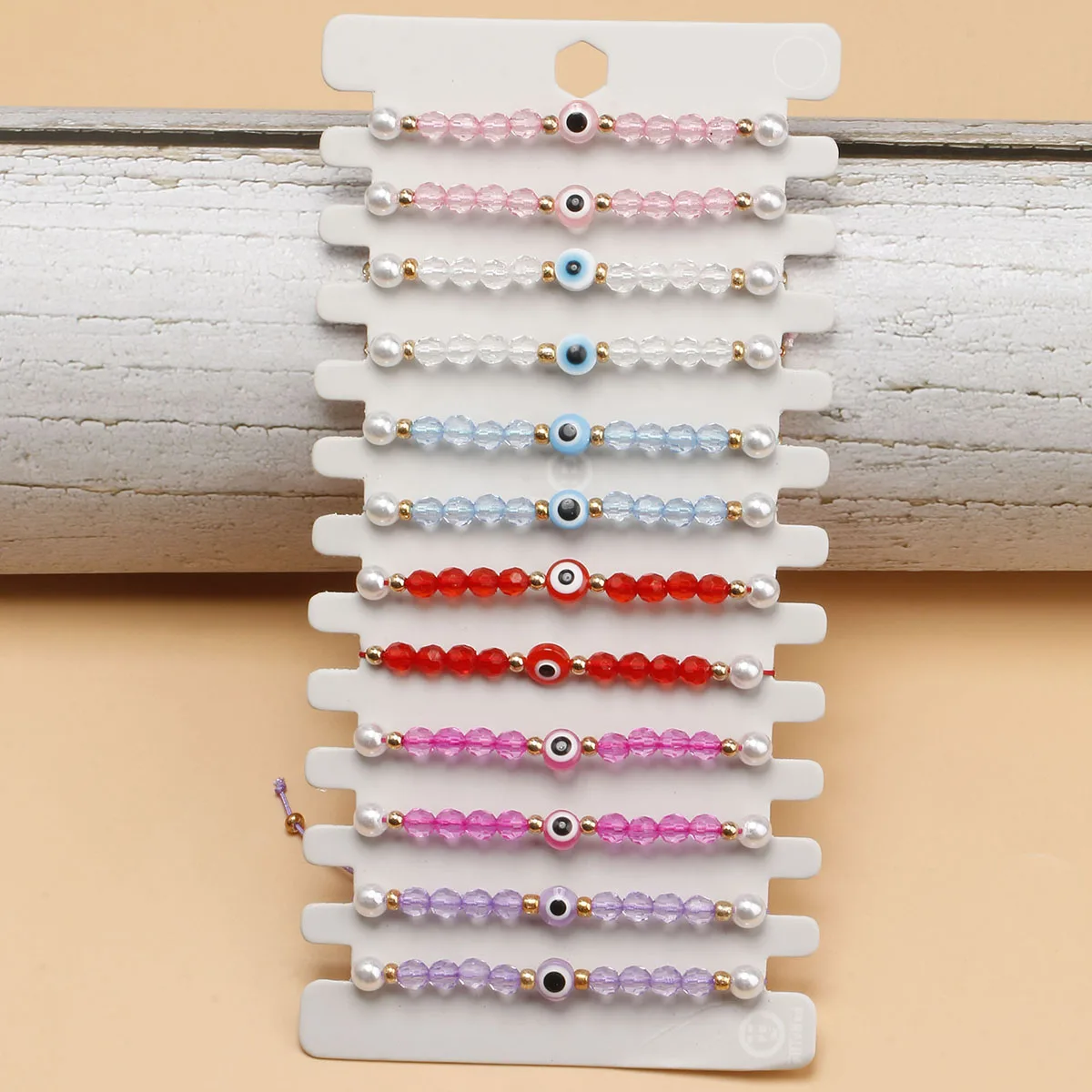 Название: 12 шт./лот, блестящий браслет с кристаллами и жемчужинами, турецкий браслет с подвеской в виде сглаза, регулируемый плетеный браслет, этнические ювелирные изделия, оптовая продажа.