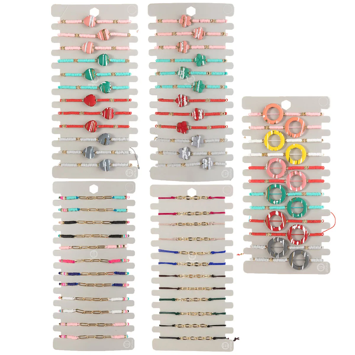 Название: 12 шт богемные полимерные глиняные бисерные сердечки Круглые Цветочные амулеты Браслеты для женщин Регулируемая плетеная веревка Цепочка ножной браслет ювелирные изделия подарки.