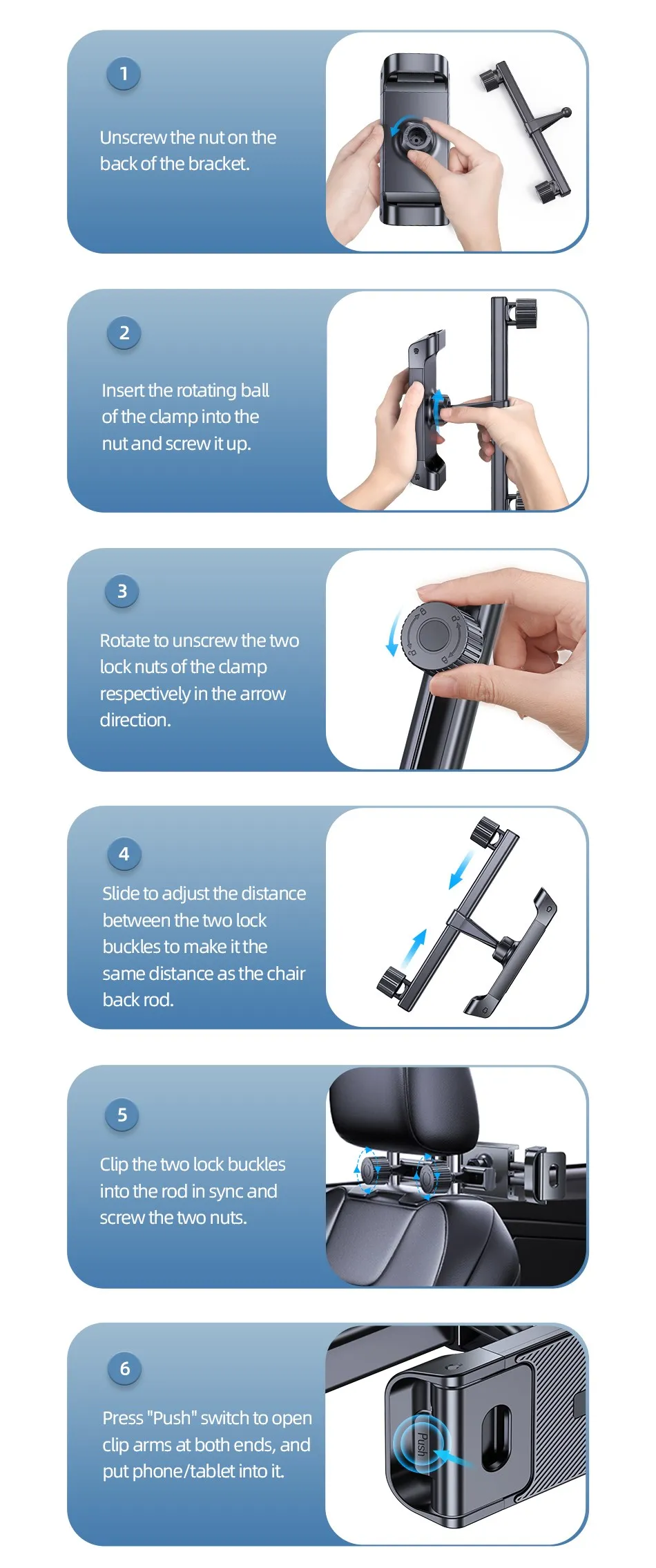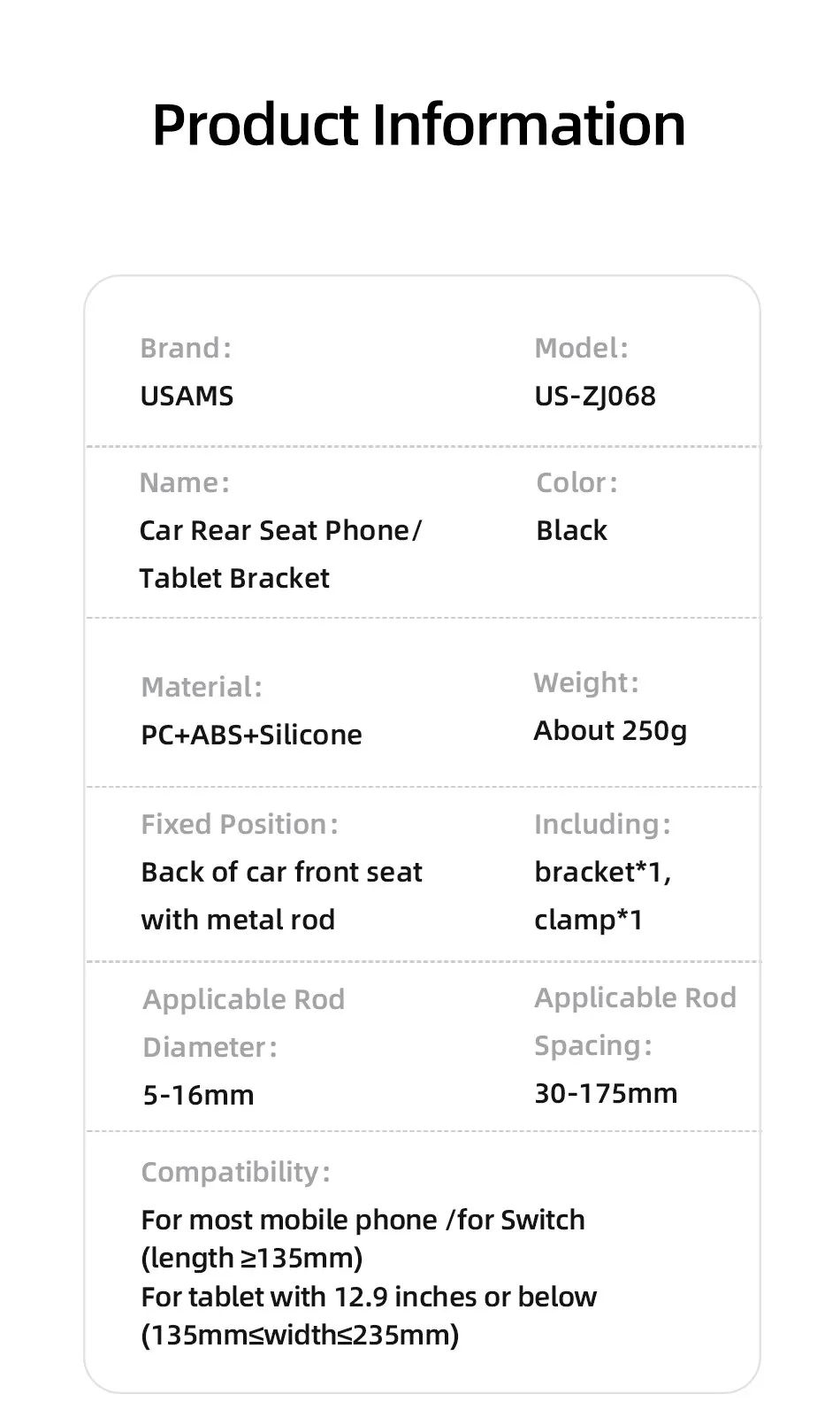 Подходит для спинки сидений большинства автомобилей на рынке (диаметр стержня между 5-16 мм расстояние между андродом и 30-175 мм)