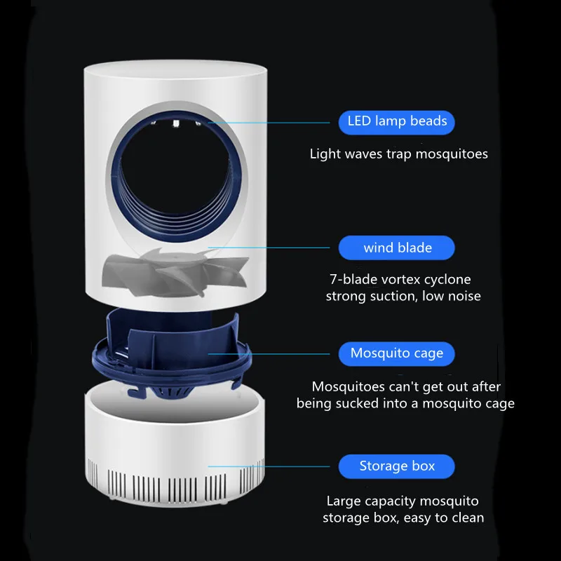 -Пожалуйста, избегайте падения с высоты, или лопасти вентилятора могут быть покрыты. Не открывайте ящик для ловушки комаров часто. Пусть вентилятор будет работать, пока комар не высохнет и не умрет.