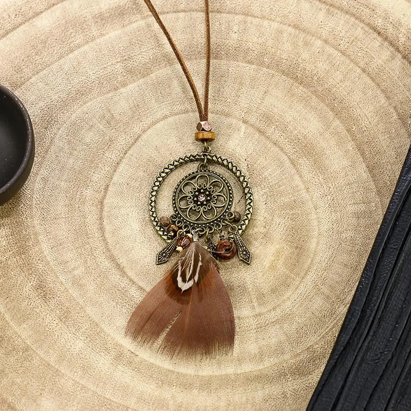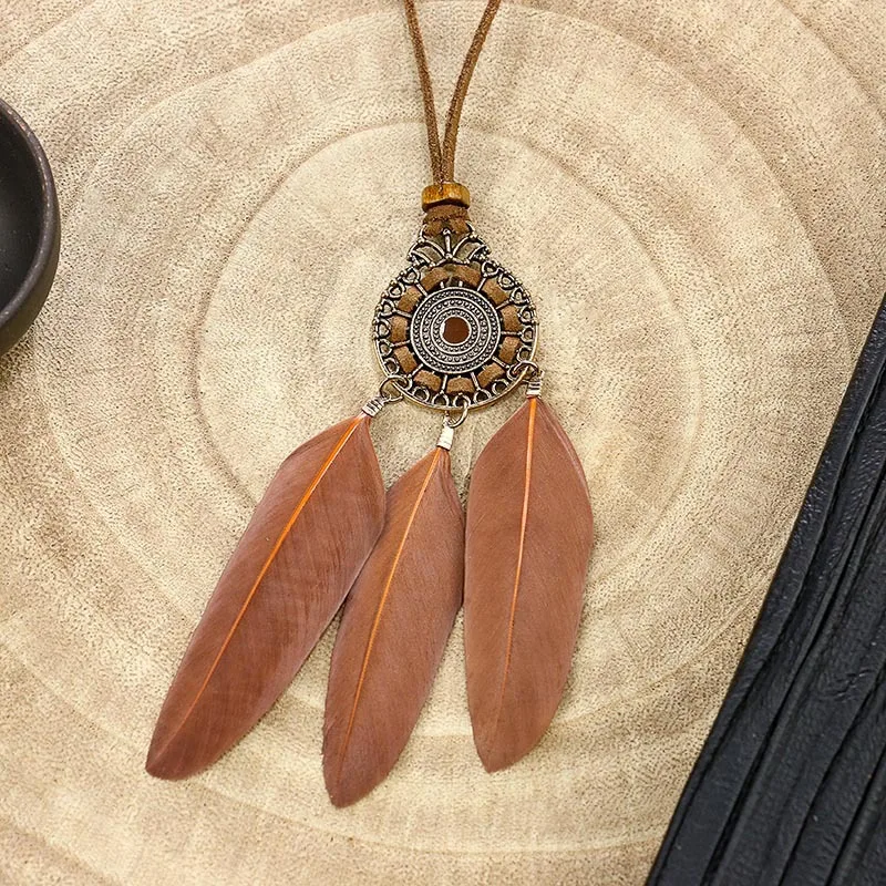 Этнические цыганские Длинные Коричневые веревки цепи кожаный кулон ожерелье для женщин кисточкой богемные геометрические ювелирные изделия ручной работы аксессуары