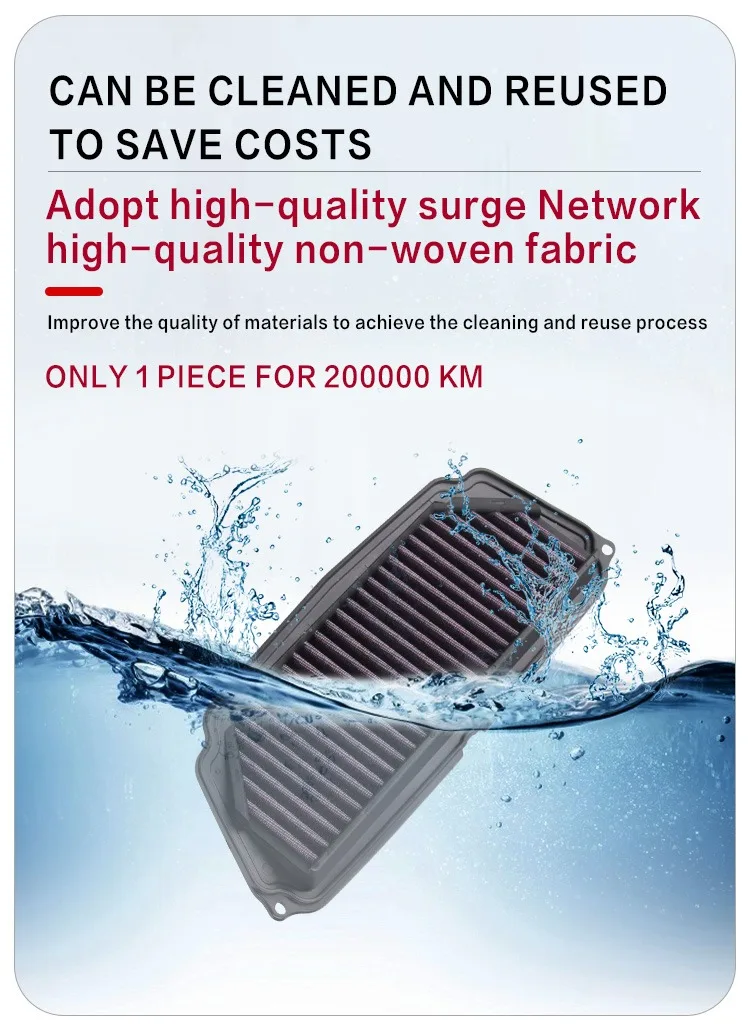 The uniform microscopic holes on wire mesh ensures very consistent filtration and airflow. Thus allowing engines to breathe better as compared to the inconsistent airflow of cotton/foam filter. With a simple panel filter, you can expect a decent horse power gain from mid to high RPM. Acceleration is smoother and faster. The feeling is like changing to an open pod air filter. filter will still deliver its promised filtration without compromise under extreme temperature. The filter element is strong and will not be easily shifted even under extreme pressure.
