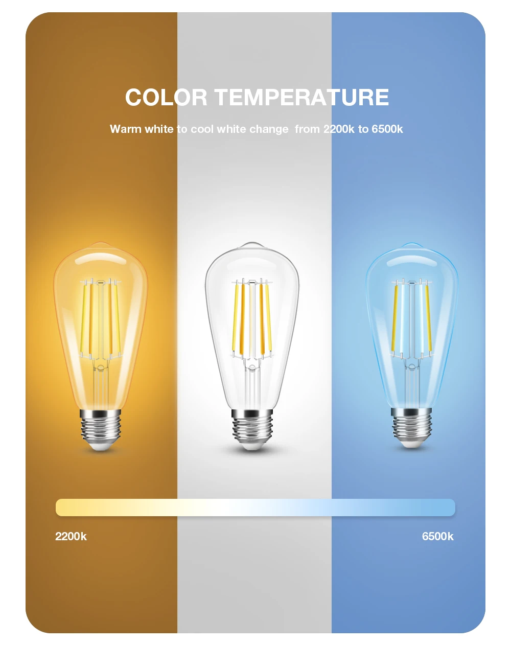 🔥Цветовая температура:Есть теплый белый и холодный белый (2200-6500K) на выбор, теплый белый подходит для глаз, очень подходит для сна/отдыха ночью, холодный белый цвет лучше подходит для работы/чтения дома/в офисе;