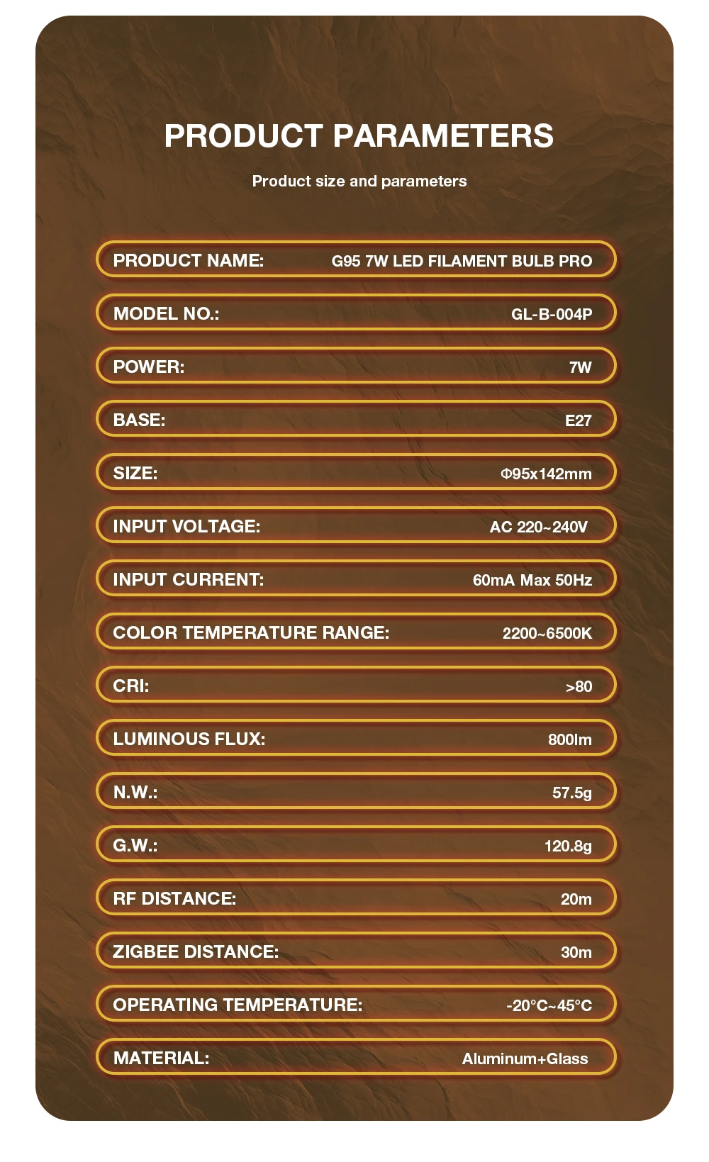 Название продукта: ST64/A60/G95 7W светодиодный лампочка накаливания Pro