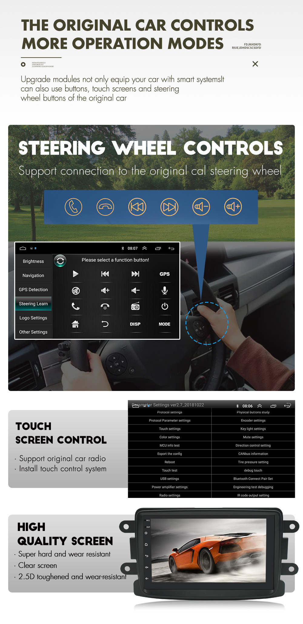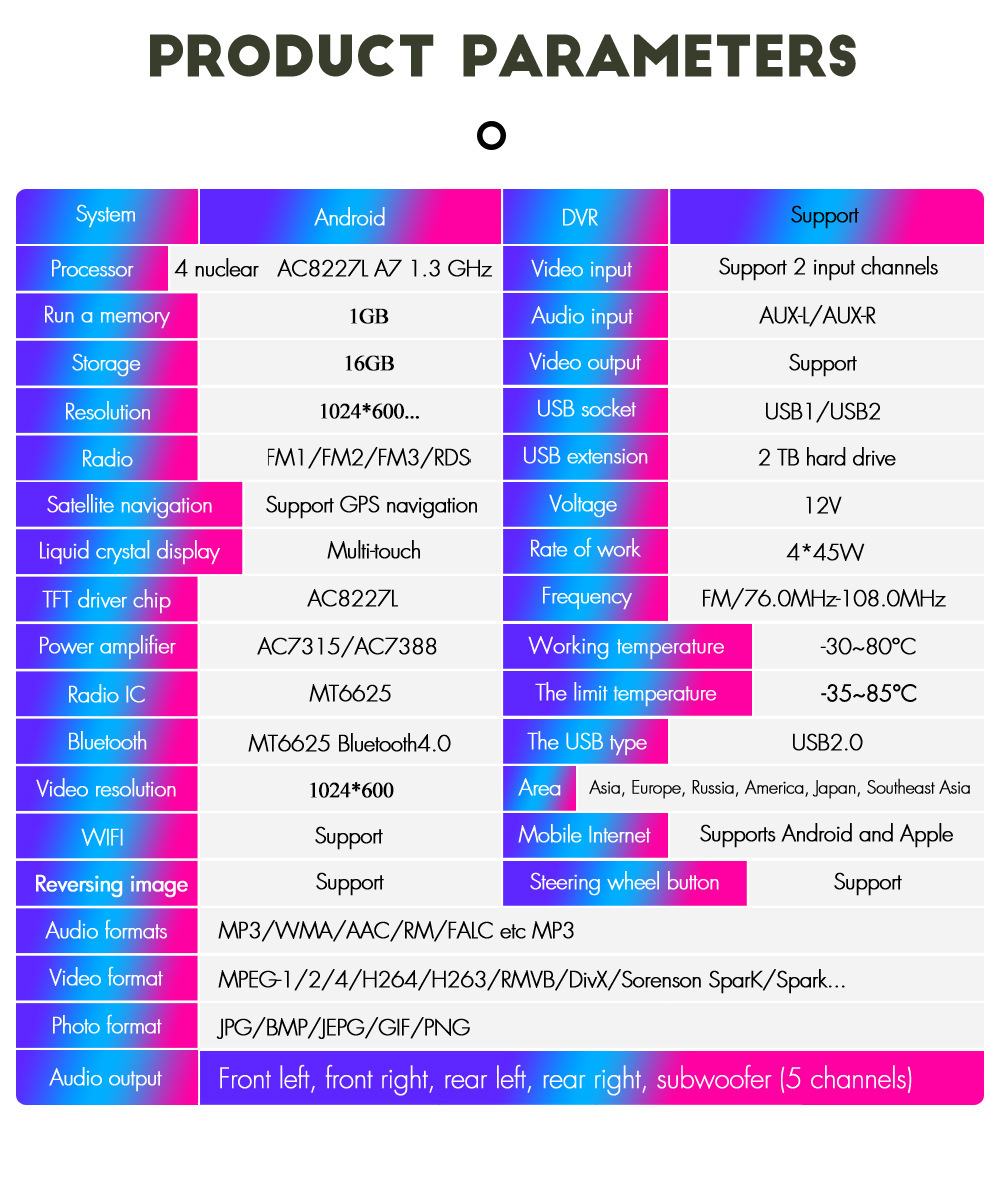 -Простота установки, нет необходимости резать или модифицировать оригинальные провода.-Система Android 11, поддерживает Google Play store, вы можете установить свои любимые приложения.-Встроенный беспроводной и проводной Apple CarPlay и Android Auto.-Встроенная зеркальная связь для телефонов android и iphone.-Advanced 4/8core Процессор, DDR4 1/2/4G Оперативная память + 16 GB/32/64G Встроенная память, запускает приложения плавно и быстро.-С 7 "многоточечный емкостный сенсорный экран, HD IPS разрешение: 1024*600.-С навигационной системой android GPS, поддерживает онлайн-навигацию Google Maps.-С Bluetooth 4,0 v для телефонных звонков или воспроизведения музыки, поддерживает телефоны Android или iPhone.-Поддержка эквалайзера для высокого качества звука.-Встроенный радио тюнер, поддерживает AM и FM-Встроенный WiFi модем, Поддержка стандарта 802.11b/g/n WLAN, высокая производительность, низкое энергопотребление-Со встроенным микрофоном.-Поддерживает оригинальное управление рулевым колесом.-Поддерживает вход камеры заднего вида, изображение заднего вида можно переключать автоматически при обратном направлении автомобиля (камера не является необязательной).-Поддержка расширенной SD карты/GPS карты/USB палки.-С красивыми сенсорными кнопками.-Несколько языков: русский, английский, китайский, испанский, португальский, греческий, итальянский, французский, голландский, турецкий, шведский, норвежский, польский, японский, корейский, Малайзия, индонезийский (более 60 языков).