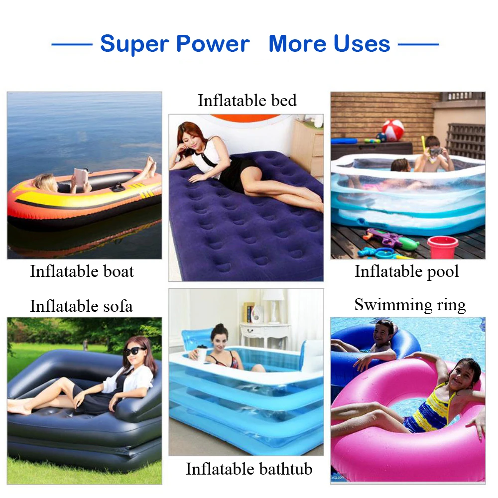Широкое использование, этот воздушный насос может быть использован с воздушной подушкой, воздушным матрасом, надувным бассейном/лодкой/диваном/ванной/водяной кроватью/плавающими кольцами и т. Д.