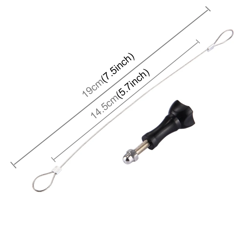 4. Этот трос прикрепляется к винту большого пальца, прилагаемому ко всем корпусам камеры GoPro. Петля вращается по винтовой стороне и имеет идеальный размер, поэтому она не выходит на большой палец. Два или более единиц могут быть соединены вместе, чтобы продлить его длину. Крепится к стандартному винту для большого пальца GoPro.