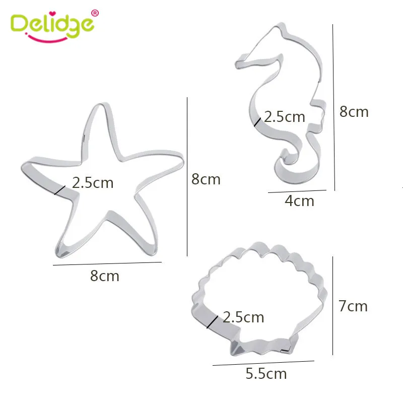 3 шт./компл., новинка, мультяшная тема океана, нержавеющая сталь, резак для печенья, 3D оболочка, гиппокамп, морская звезда, печенье, форма для торта, сделай сам, инструменты для выпечки