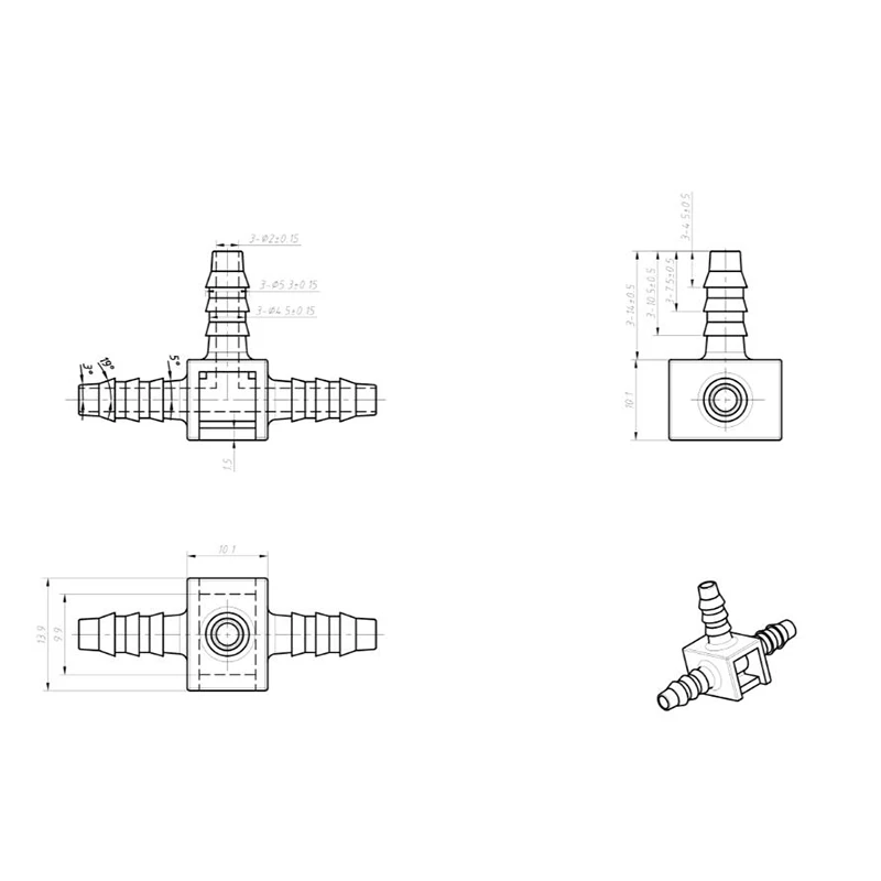 T4 - ID4, подходит для нейлоновой трубки ID4 * 6Тройник Типа T для нейлоновой трубки 4*6 ммМакс barb конец: 6,8 мм (елка)Количество: 25 шт./лотБесплатная доставка!