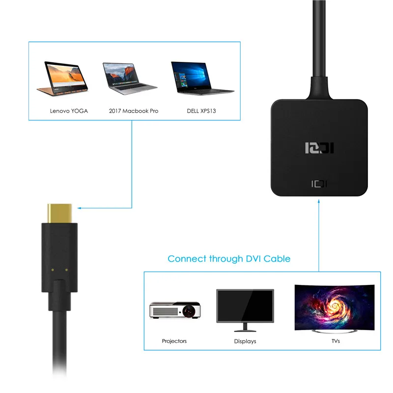 ICZI USB 3,1 type-C для переходника dvi идеально подходит для вашего офиса, конференц-залов, торговых шоу, домашнего развлекательного дисплея, школы и корпоративного обучения и многое другое. Вы можете подключить ваш Mac, ПК или планшет, оснащенный дисплеями типа C к DVI, такими как HDTV, ЖК-мониторы, проекторы, телевизор высокой четкости и многое другое для потокового видео HD. Наслаждайтесь фотографиями, видео, презентациями, играми на большом экране.
