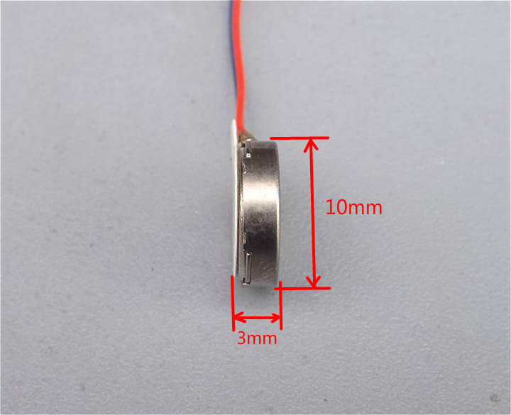 Motor Diameter: 10mm Motor Thickness: 3mm Wire Length: about 10mm Voltage: DC3.7V Current: 80mA Qty: 2pcs/lot