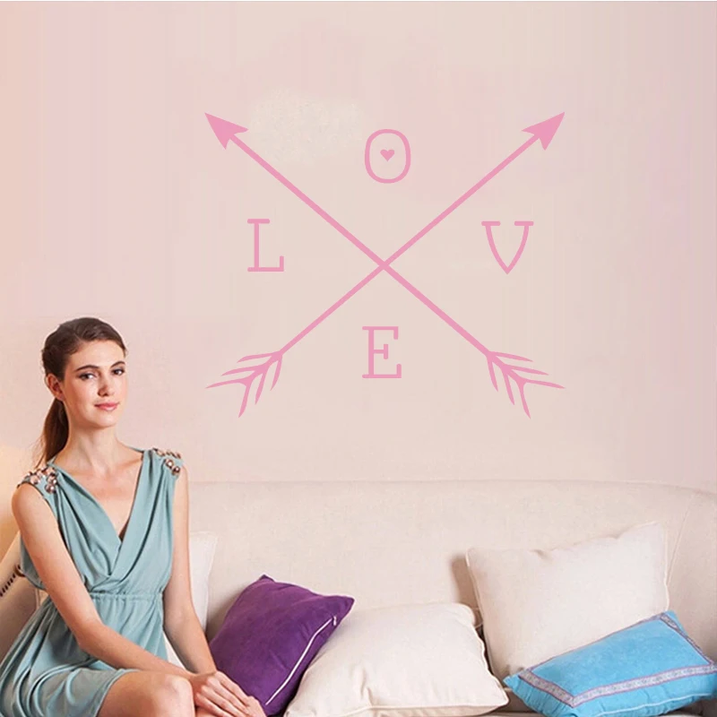 Виниловая вырезка в форме сердца с изображением стрелы и сердца, съемная Настенная Наклейка на стену, художественный постер, модная простая картина для украшения дома, DW0055