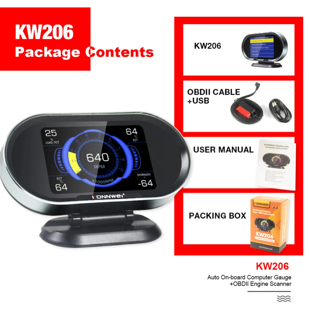 KONNWEI KW206 OBDII сканер штрих-код читателя неисправностей автомобиля сканирования + повязка для головы мобильного выставочного стенда с коробкой каналов кабельного телевидения Поддержка 5 Основные протоколы 2-в-1 12V авто-Стайлинг OBD2 автомобильный диагностический инструмент для ремонта автомобиля