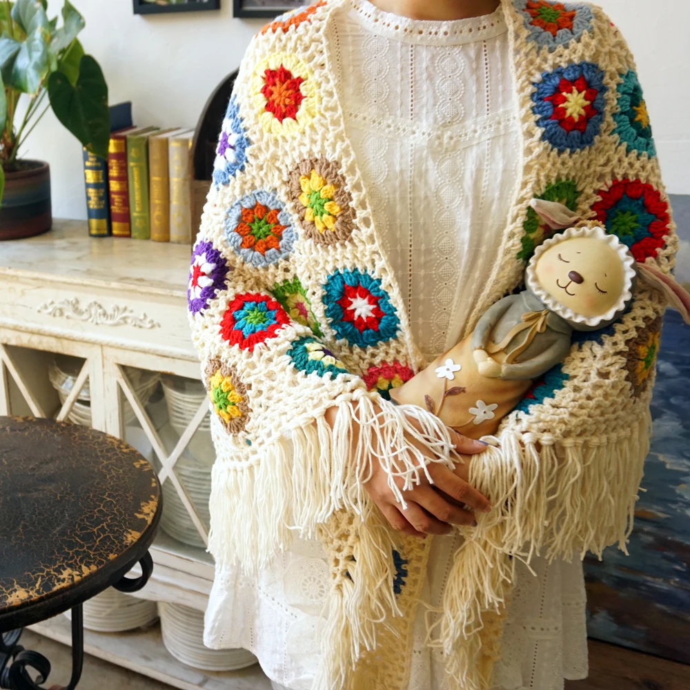Случайный цвет цветка Шаль ручной работы Материал: акрил