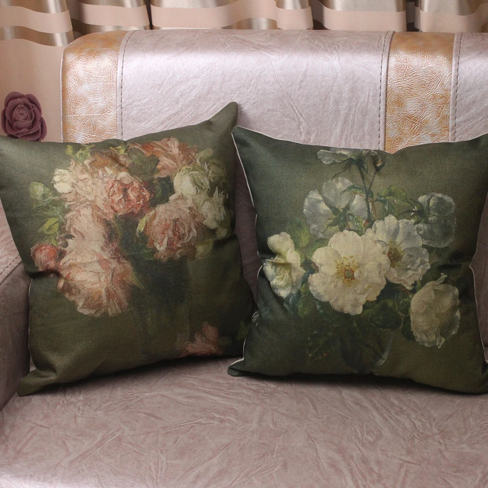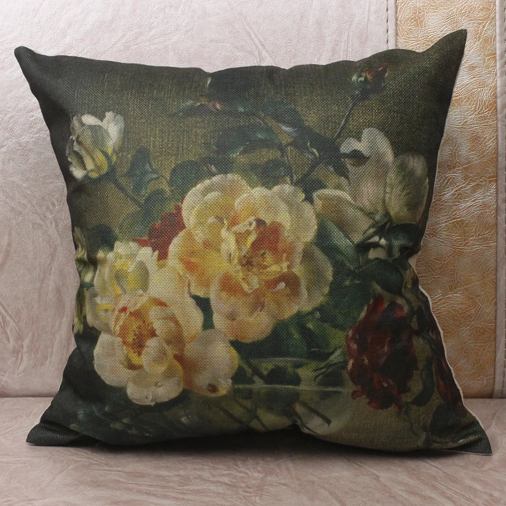 Винтажная декоративная подушка для дивана с цветочным принтом и масляным принтом, квадратные Чехлы для дивана, наволочки для дивана 45x45 см, новые подарки