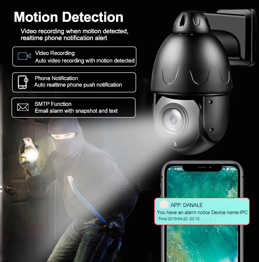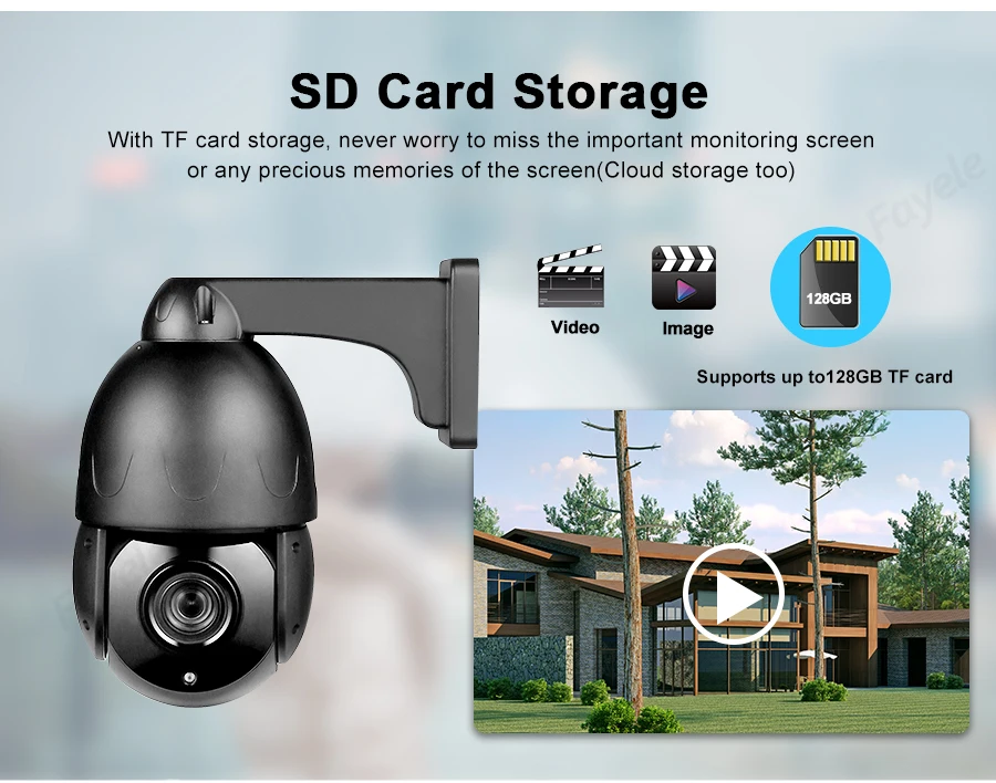 8 МП Датчик изображения: MSC328Q + 1/2.8 "SONY415 низкий люкс CMOS датчик Объектив: 4,7 ~ 94 мм Разрешение видео: 8 МП (основной поток: 3840*2160 @ 20 кадров в секунду, 3072*2048/2592*1944/2560*1440/2304*1296/2048*1536/1080P/960P/720P/D1 @ 30 кадров в секунду Подпоток: 720*480D1/VGA/640*360/CIF @ 30 кадров в секунду); Подпоток: 640x352 @ 25fps, 320x176 @ 25fps) Сжатие видео: H.265/ H.264 Сжатие звука: G.726/G.711 Скорость аудио кода: 8 кбит/с, 16 бит Связь сигнализации: будильник мобильный телефон сообщение push; Будильник отправляет фотографии в почтовый ящик, Будильник загружает фотографии и видео на ftp-сервер, Будильник записывает фотографии и видео на карту Micro SD, Будильник записывает изображения и видео в Облачное хранилище Звуковой сигнал будильника, можно настроить звук Протокол Onvif: Поддержка ONVIF 2,4 (обратная совместимость) Хранение: Поддержка Micro SD карты до 128 г; Режим записи: запись будильника, запись времени Воспроизведение видео: поддержка приложения, IE браузер, удаленный клиент воспроизводит и загружает видео Облачное хранилище: Да Вращение PTZ: горизонт: 0 ° ~ 355 °, вертикальный: 0 ° ~ 90 °; Скорость 20 ° ~ 40 °/С Рабочая среда: среда-20 ℃ ~ + 60 ℃(-4 ℉ ~ + 140 ℉), влажность 10% ~ 90%, без конденсации Уровень водонепроницаемости: IP66