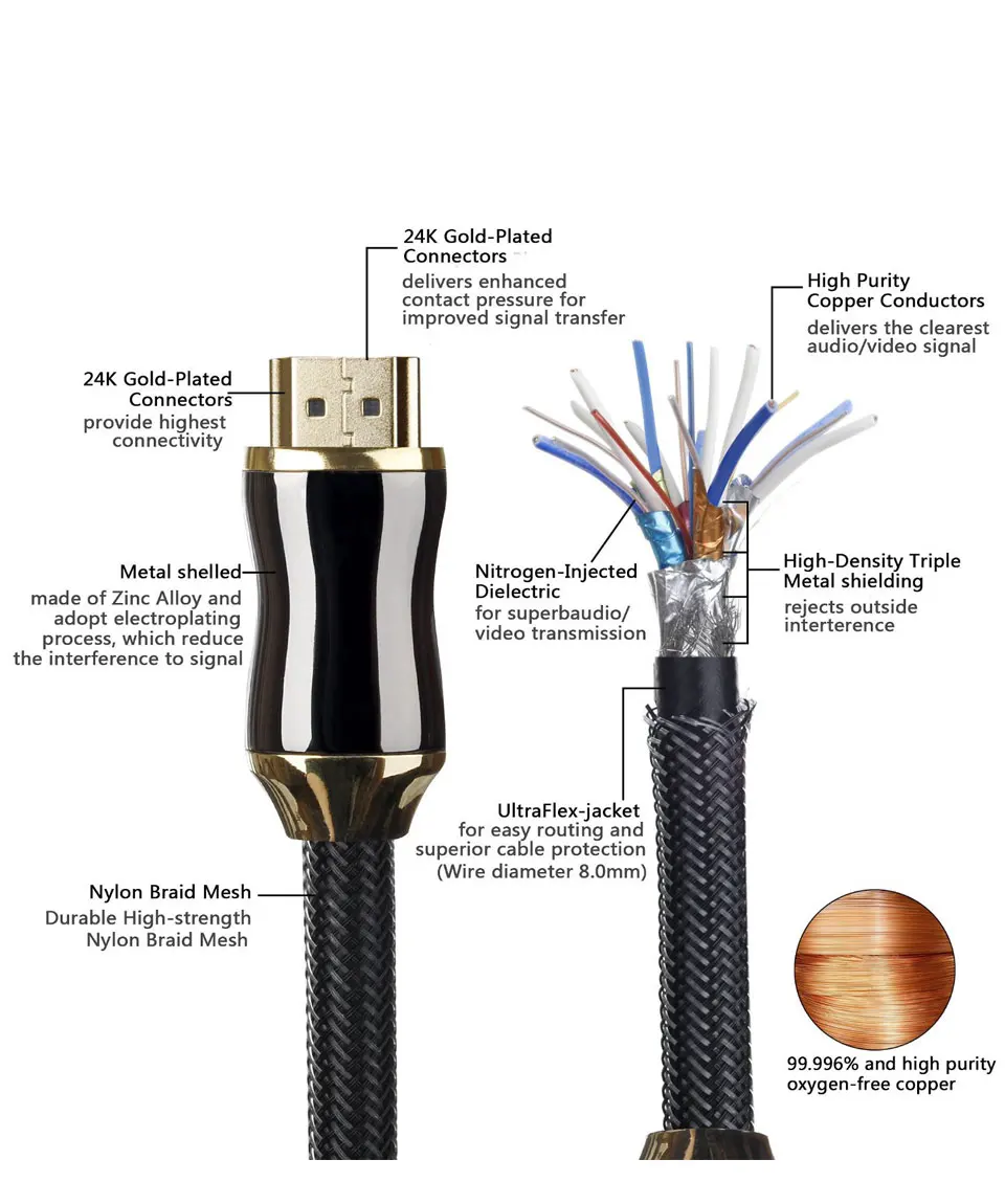 2,0 HDMI-совместимый кабель 4K ТВ адаптер кабель для HD TV LCD ноутбука PS3 проектор ПК