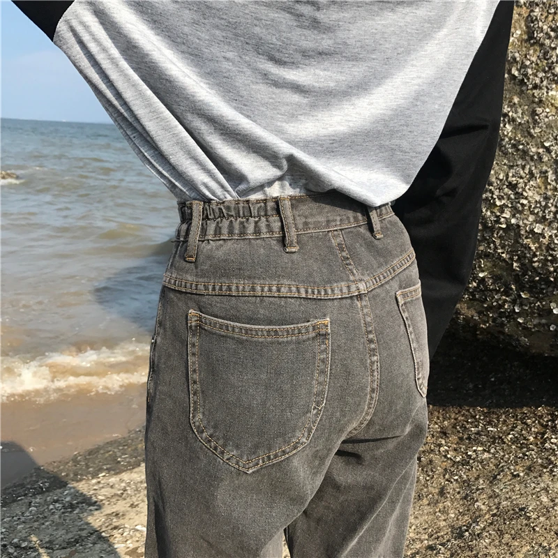 Женские винтажные джинсы-карандаш, потертые серые длинные джинсы с высокой талией, в стиле Харадзюку, для колледжа, на лето