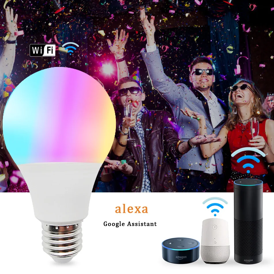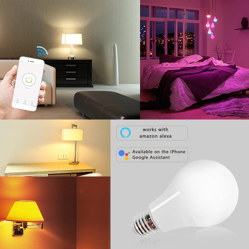 TUYA умный светильник 12 Вт 15 Вт, Muticolor, WIFI, светильник управления, E27 RGB, светодиодная лампа с регулируемой яркостью, Alexa, совместимое приложение, Домашний Светильник Google
