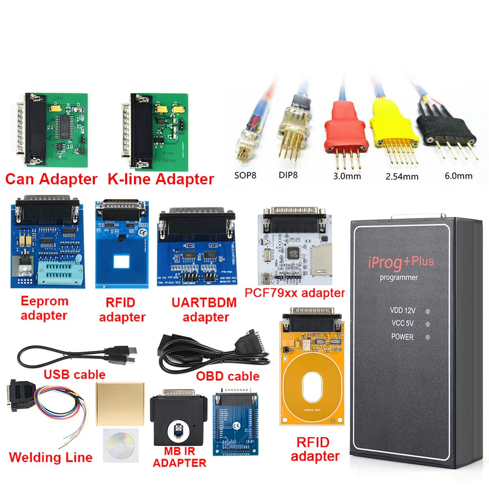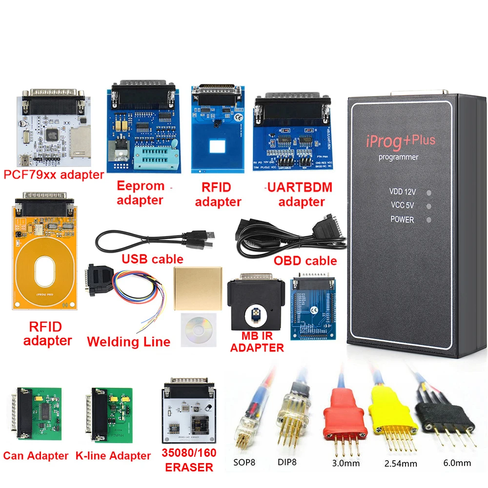 Новейший Iprog + Plus программист поддержка IMMO + коррекция пробега + сброс подушки безопасности Замена Carprog/Tango/DigiprogОписание:Iprog + Plus автомобильный ключевой программист, он также может поддерживать подушки безопасности, радио, dpf Выкл, ECU,IMMO key, MIL TO KM, PINABS,PINCODE SMATRA3,PINCODE датчик ограничения скорости, ODO регулировка, EEPROM,MCUAtmel,Fujutsu,Microchip,Motorola,Motorola912EN,NECV850,BLR,CAN,CRC-Cript,ibutton,sd-unlocker,test. Поддерживает транспортные средства до 2014 года. Адаптер UARTBDM предназначен для чтения NEC и проводки Motorola.Лучший программист iprog Pro предназначен для работы с автомобильной микроэлектроникой:✔Работа с одометрами на разъеме OBDII✔Работа с одометрами на столе через адаптеры✔Работа с мультимедиа разблокировкой магнитофона✔Работа с ключами (IMMO, транспондеры), копирование, подготовка, разблокировка✔Работа с автоматическим мусором IMMO-Key✔Работа с компьютером подушки безопасности, удаление данных об аварии✔Передача показаний от миль до км✔Чтение и запись процессоров и его использование в автомобилях✔Удаление сажевого фильтра на свалке✔Работа с ключами для внутренней связи✔Realign Pin cod от dump (некоторые бренды)Номер контрольной платы + полный базовый номер. Возможность обновления!Все адаптеры тестируются на производительность!1. Подушка безопасности:Чтение и стирание аварии на некоторых автомобиляхЧтение и стирание DTCРемонт CFG2. Приборная панель:Чтение кмНапишите Новый КМ3. Автомобильное радио и ECU:Автомобильное радио:Чтение и стирание информацииСчетчик сбросаECU:Immo OFFDPF ВЫКЛ4. Eeprom:Чтение/запись/стирание eeprom5. Immo:Программировать и копировать чипы для автомобилей и грузовиковКлючи разблокировкиЧехол для Toyota smart keys: сброс ключа подготовкиНапишите ключ immo dump6. Mcu:Чипы для чтения и записиЧипы крышки Atmel, Fujitsu и микрочипы Motorola, NEC v8507. Специальные функции:Миля до кмPincode от dump
