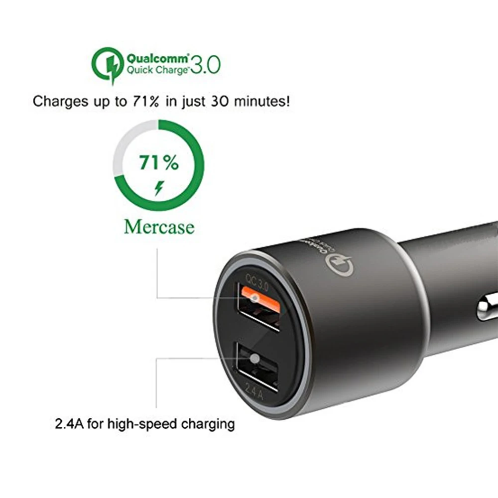 Автомобильное зарядное устройство встроенное двойное зарядное устройство: Qualcomm QC3.0 USB-порт, USB-порт, не беспокойтесь о смартфоне или электронных устройствах низкого заряда батареи во время путешествия.
