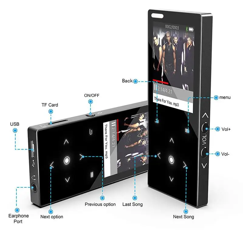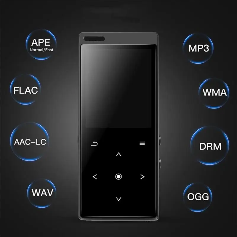 MP4-плеер Bluetooth с сенсорной клавишей, встроенный динамик без потери качества, музыкальный плеер HiFi с FM