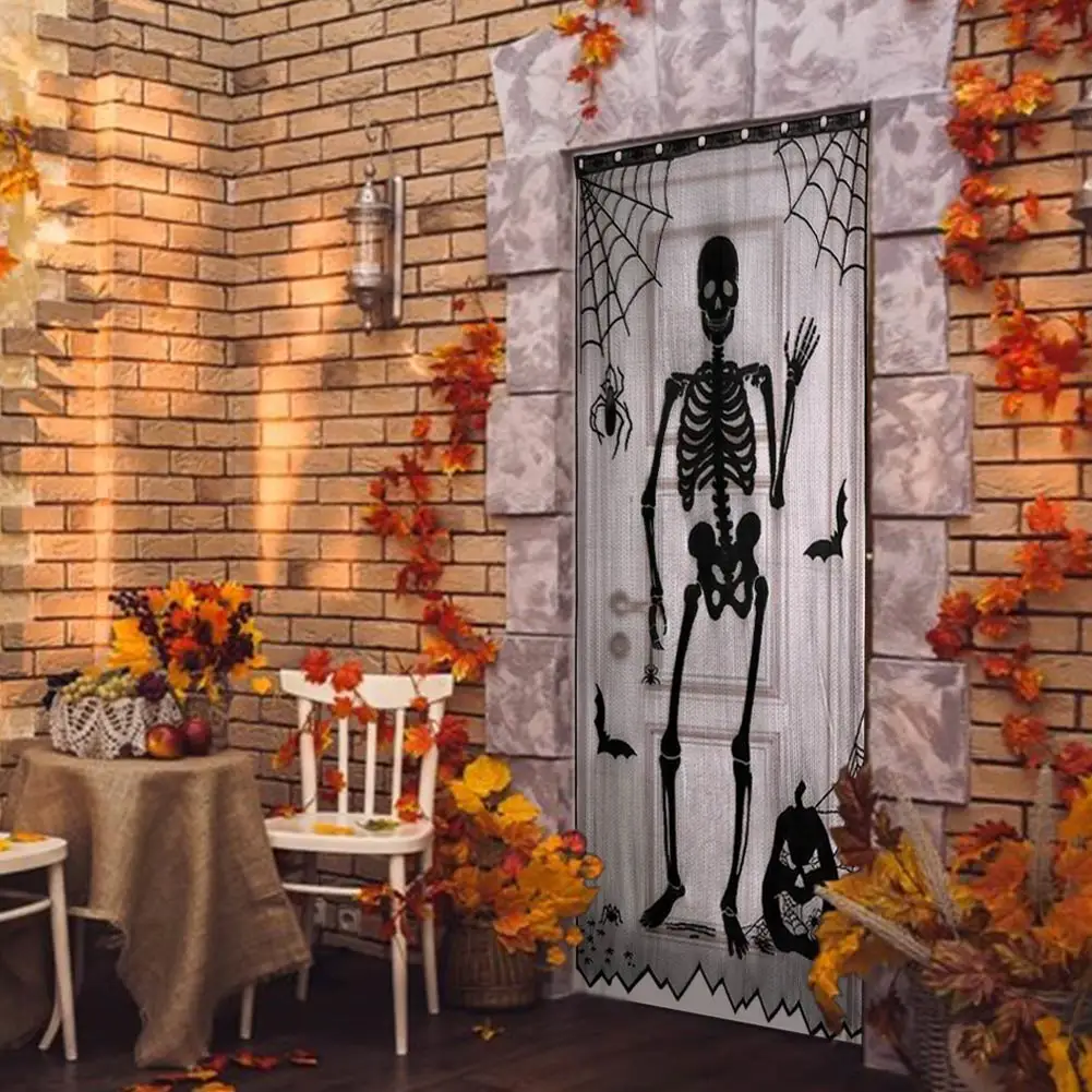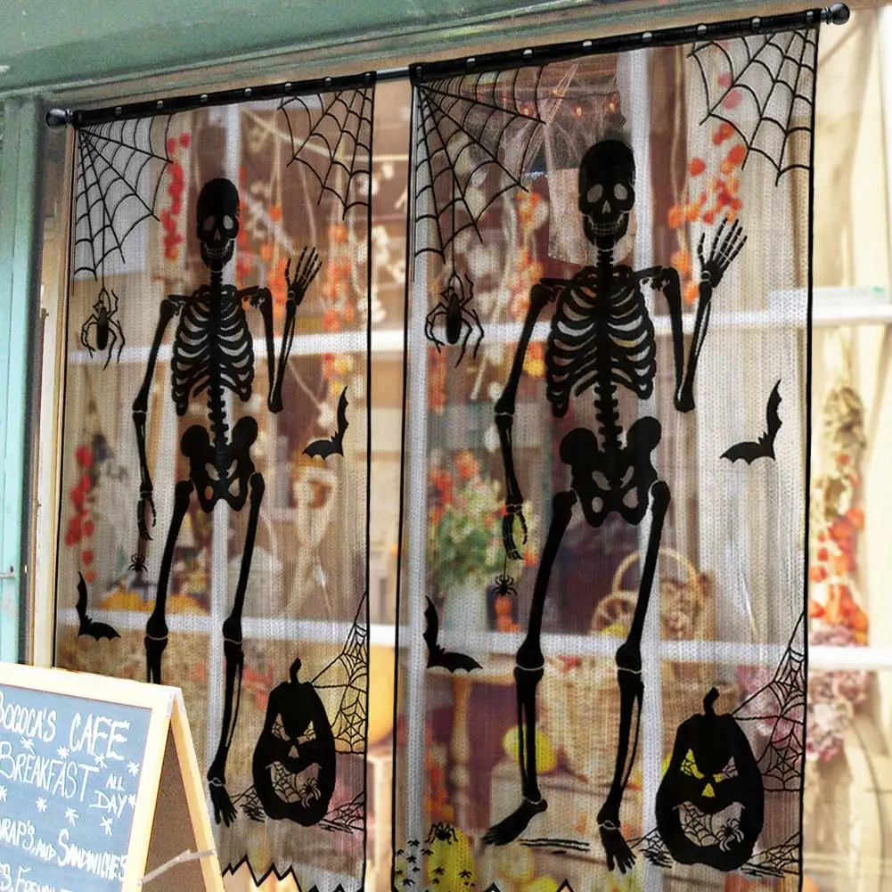 1. Занавески для окон на Хэллоуин очень красивые, с большим скелетом, паутинкой, пауками, летучими мышками, Тыквой и классическими элементами на занавесках тонкие, идеально подходят для украшения Хэллоуина. 2. Кружевной материал очень мягкий и выглядит высококлассно, Идеальное черное украшение для Хэллоуина для вашего дома и придает особое ощущение вашему праздничному украшению!