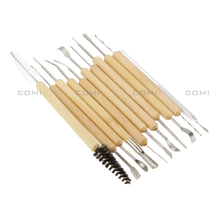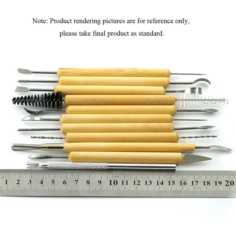 Особенности: Включает в себя 10 инструментов с деревянной центральной ручкой и двойными головками, 1 инструмент с металлической ручкой и одной головкой. Обеспечивает различные формы резьбы, чтобы дать вам больше гибкости для вашего дизайна. Отлично подходит для глины, краски, пенопласта, деревянных моделей, художественных проектов, скульптур и других ремесленных проектов. Используется для чистки, соскабливания, очистки, разглаживания, формирования, скульптуры и так далее.