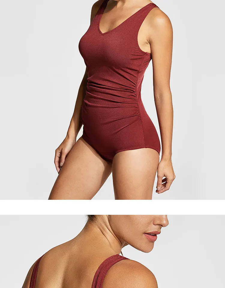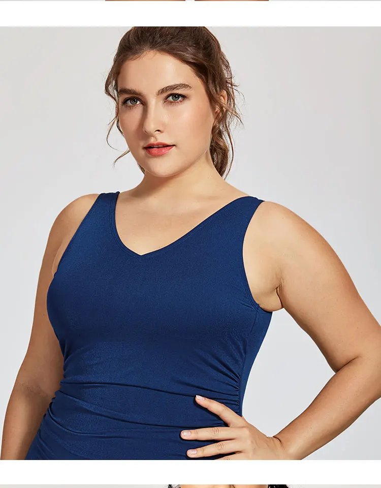 Скромный стиль Танкини Топ с v-образным вырезом хорошо прикрывает вас.