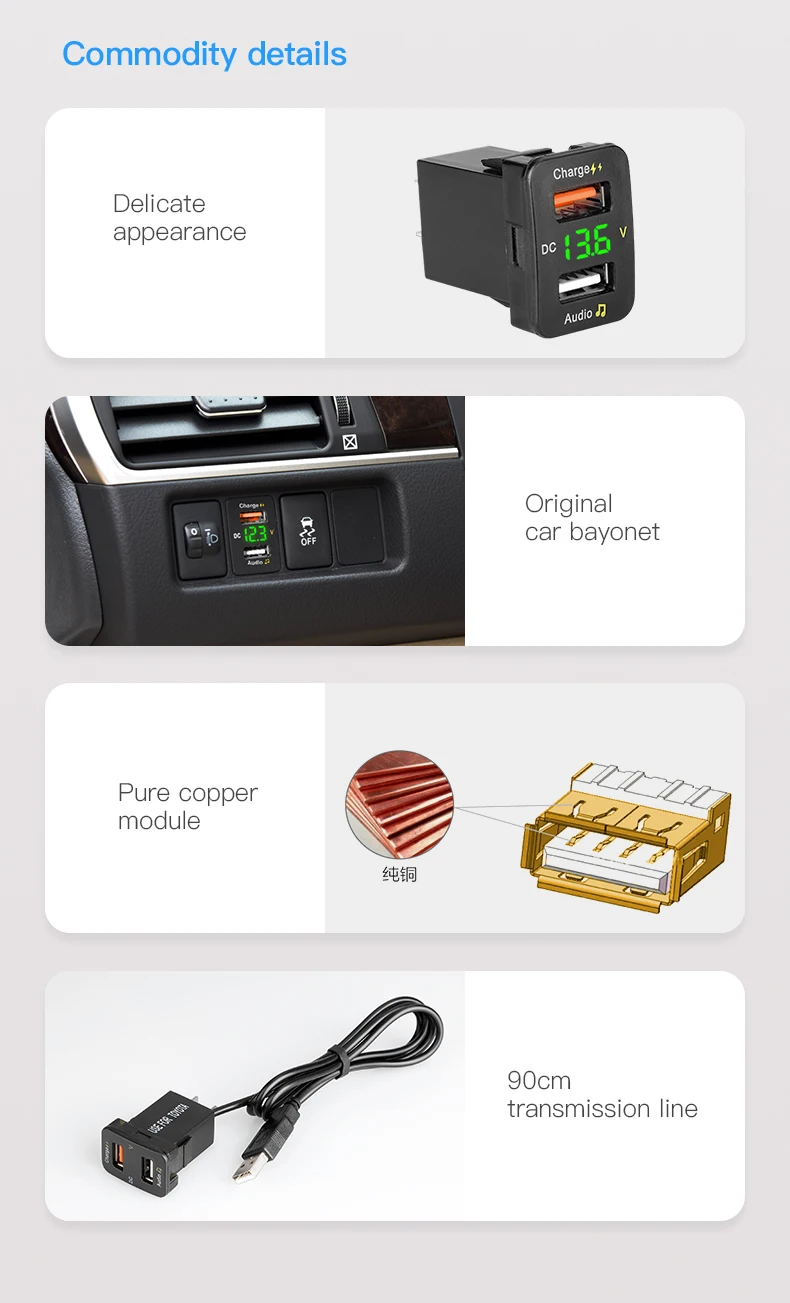 Специальное автомобильное зарядное устройство для Toyota, новая версия, двойной порт, USB, быстрая зарядка, светодиодный дисплей, 12-24 В, автомобильное зарядное устройство для Corolla / Prado / Reiz