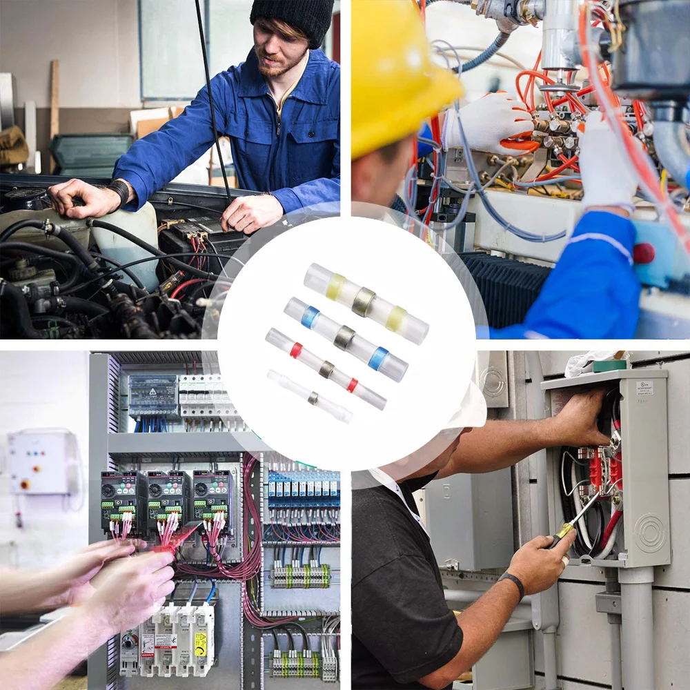1. В комплекте: 50 термоусадочных разъемов2. Может быть идеальным использованием в морских и автомобильных применениях3. Полиолефиновая трубка снаружи и термоплавкий клей внутри4. Припой и уплотнение и с расширенной водонепроницаемой функцией5. Полиолефин Термоусадочные стыковые соединители Улучшенная прочность вытягивания, обеспечивает уплотнение, Снятие напряжения, проверку кабеля и изоляциюСпецификация:Напряжение: Макс. 600 вМатериал: ПолиолефинТемпература плавления: 138 °CКоэффициент усадки: 2: 1Применяется к: 10AWG/12AWG/14AWG/16AWG/18AWG/20AWG/22AWG/24AWG/26AWG луженый медный кабельВ комплект входит (50 цветов и размеров):22 x красный Термоусадочные соединители: диаметр 3,0 мм, сечение кабеля 0,5-1.0mm2 22-18AWG13 x синие Термоусадочные соединители: диаметр 5,0 мм, сечение кабеля 1,5-2,5 мм2 16-14AWG10 x Белые Термоусадочные соединители: диаметр 1,5 мм, сечение кабеля 0,25-0,34 мм2 26-24AWG5 х желтые Термоусадочные соединители: диаметр 6,0 мм, сечение кабеля 4,0-6.0mm2 12-10AWG