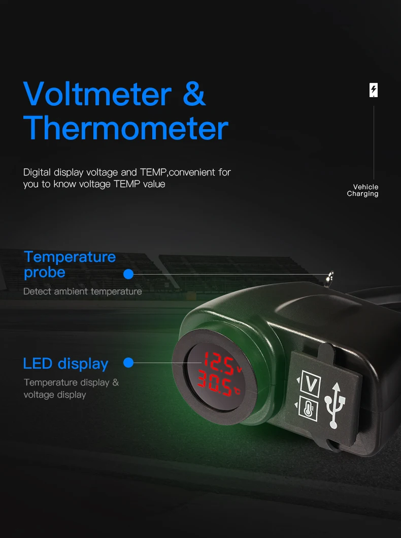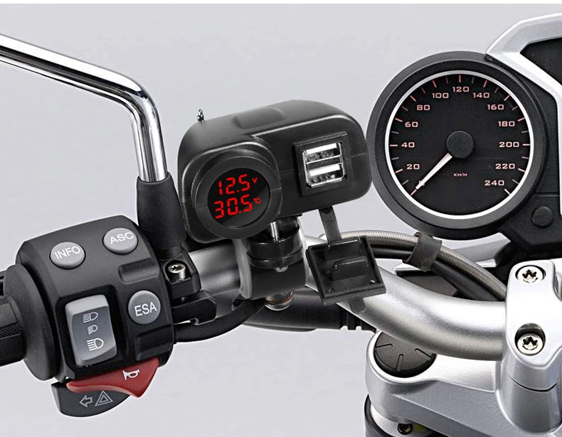 Зарядное устройство USB для мотоцикла, с вольтметром, светодиодным дисплеем и термометром, 12 В-5 В, 2,1 А