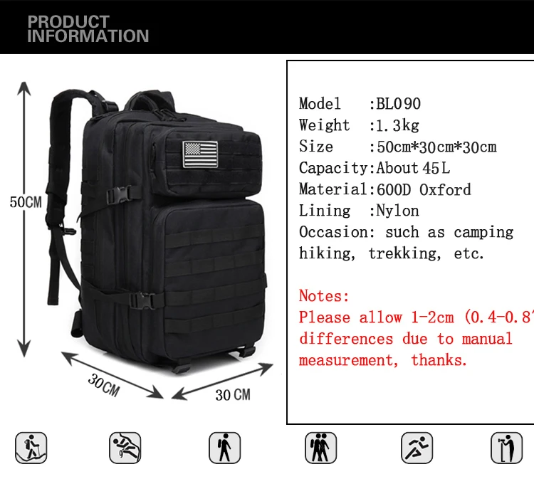 Этот многофункциональный уличный тактический рюкзак идеально и удобно для вас, когда вы занимаетесь спортом на свежем воздухе, такими как Пешие прогулки, кемпинг или альпинизм. Он состоит из основного отделения и многих небольших карманов. Он обеспечивает максимальное пространство для хранения и имеет систему лямки MOLLE для увеличения нагрузки. Модный внешний вид и дизайн будут очень популярны.