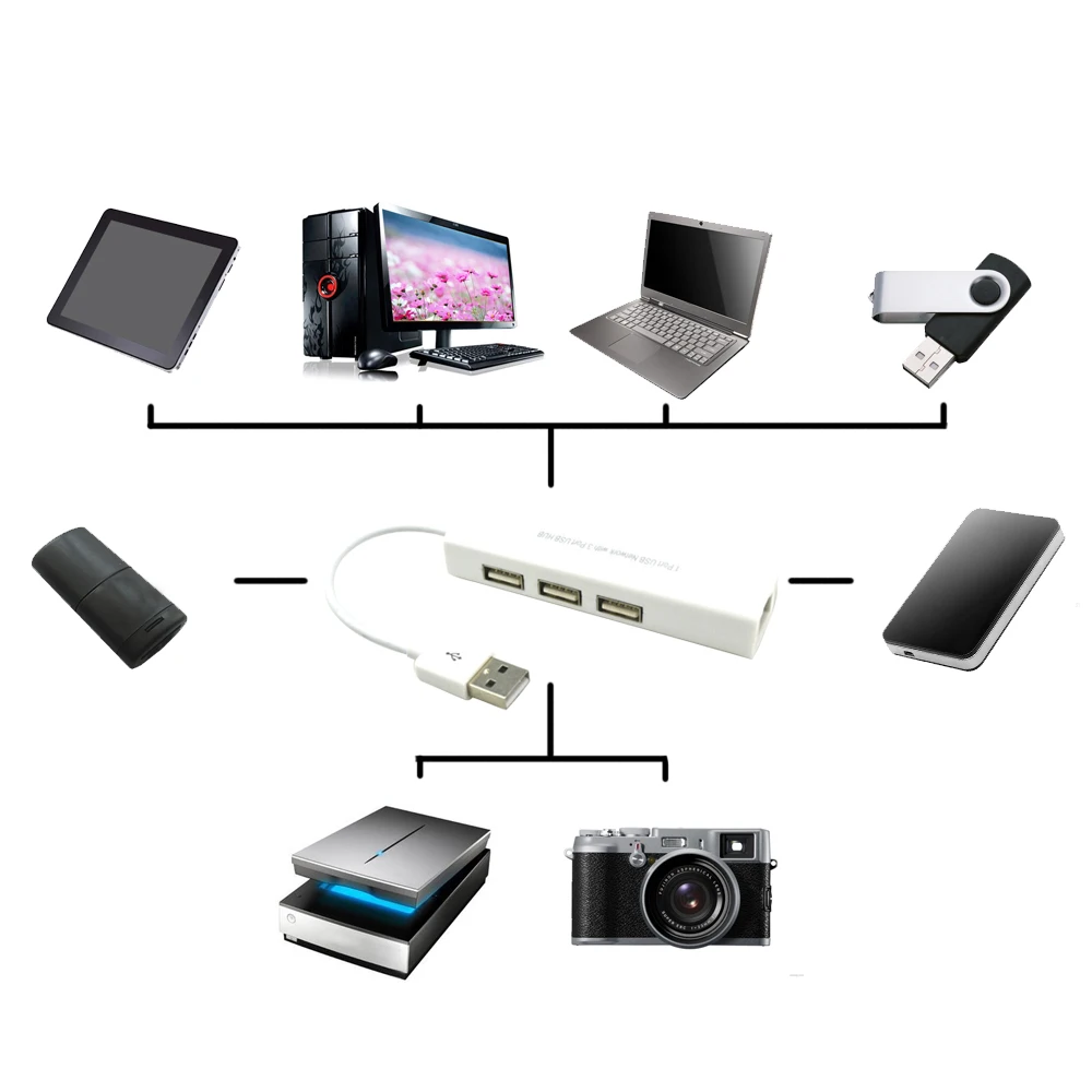 Elisona 3 порта USB 2,0 концентратор к RJ45 10/100 Мбит/с USB Ethernet сетевой адаптер конвертер Расширение кабель передачи данных для Win7
