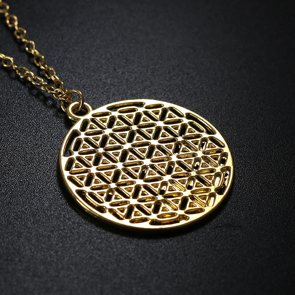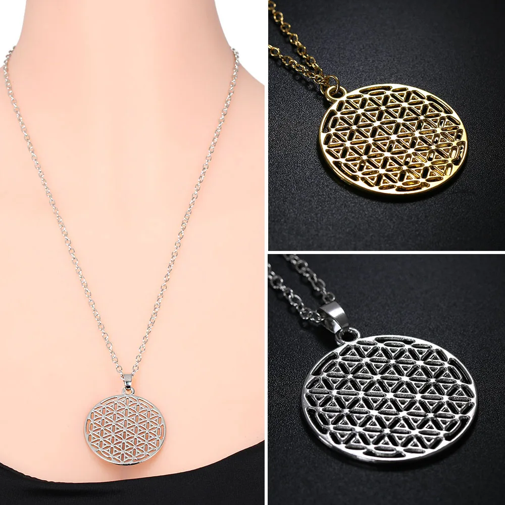 Цельнокроеное платье модные Винтаж цветок жизни кулон Сакральная Геометрия Серебряная цепочка Цепочки и ожерелья ювелирных изделий