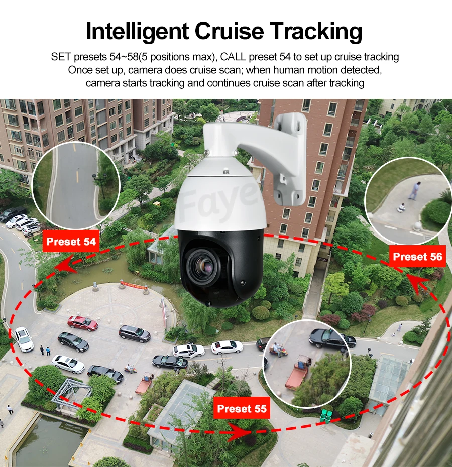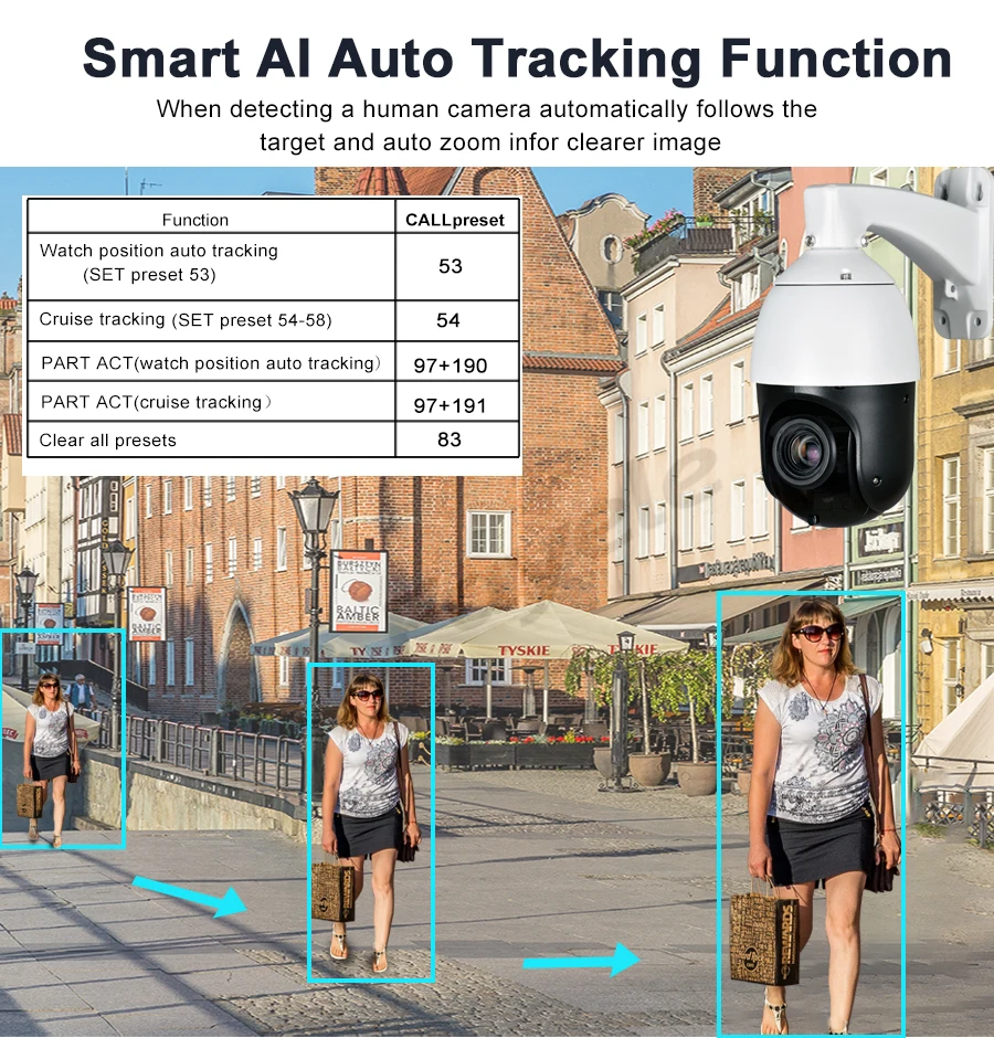2) Поддержка функции автоматического слежения, при обнаружении цели камера немедленно повернет положение, ориентированное на цель, для увеличения и автоматического отслеживания движения цели.