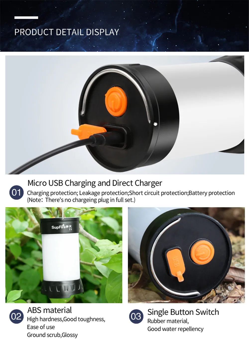1 * T1 светильник для кемпинга 1*18650 аккумуляторная батарея 1 * usb-кабель для зарядки 1 * упаковочная коробка