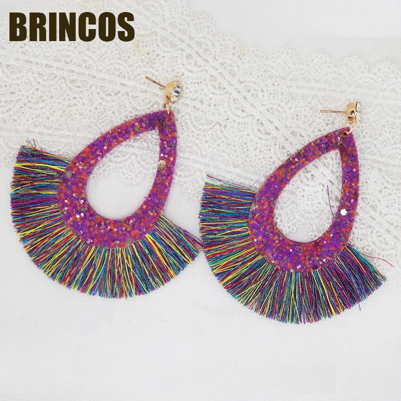 Nombre дель продукция: женские серьги с кисточками в богемном стиле, украшенные блестками, вечерние ювелирные изделия, эффектные длинные золотистые ретро-модели