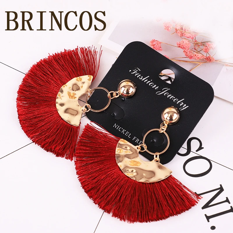 Серьги для женщин ювелирные изделия бохо индийские богемные массивные капли золота aliexpress 2019 Желтые красные большие модные кисточки
