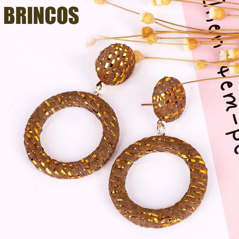 Nombre del producto: женские серьги из ротанга, богемные большие золотые индийские ювелирные изделия, эффектные aliexpress в стиле бохо, 2019