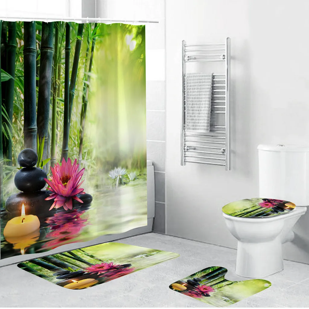 4 шт. нескользящий Набор ковриков из полиэстера для туалета и ванной комнаты, занавеска для душа