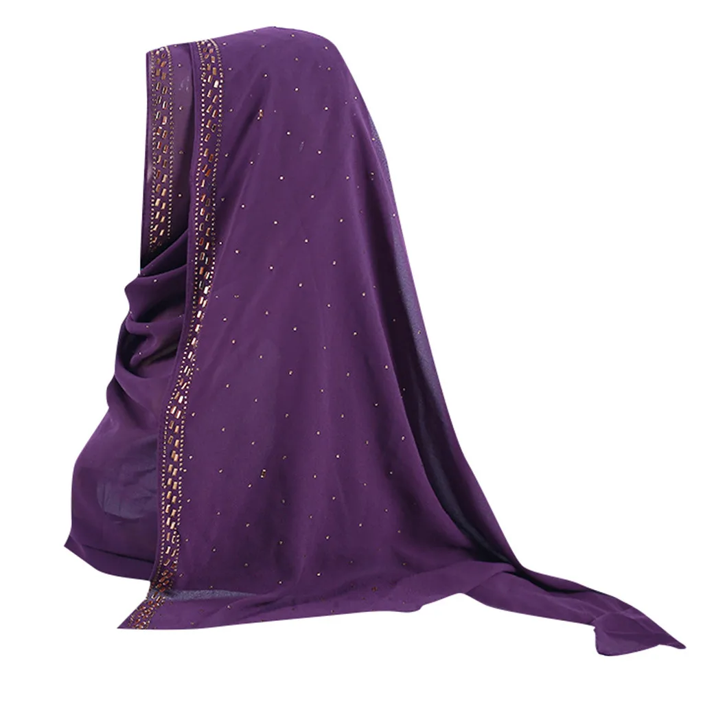 Блестящий Золотой блестящий простой шифоновый мусульманский хиджаб шарф платок повязка на голову