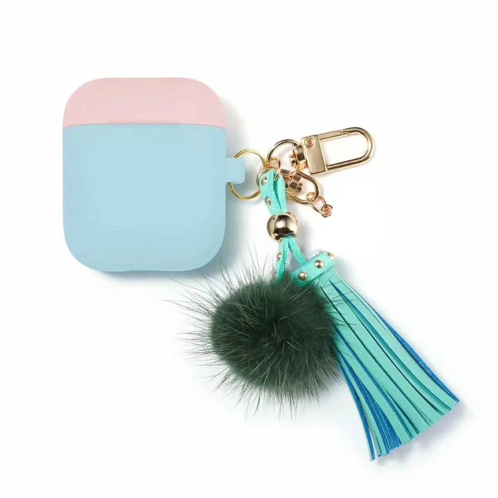 Новейший и удобный чехол для AirPods-поставляется с меховыми помпонами, брелками puffball, ремешком против потери, водонепроницаемым беспроводным чехлом для зарядки Apple Airpods.