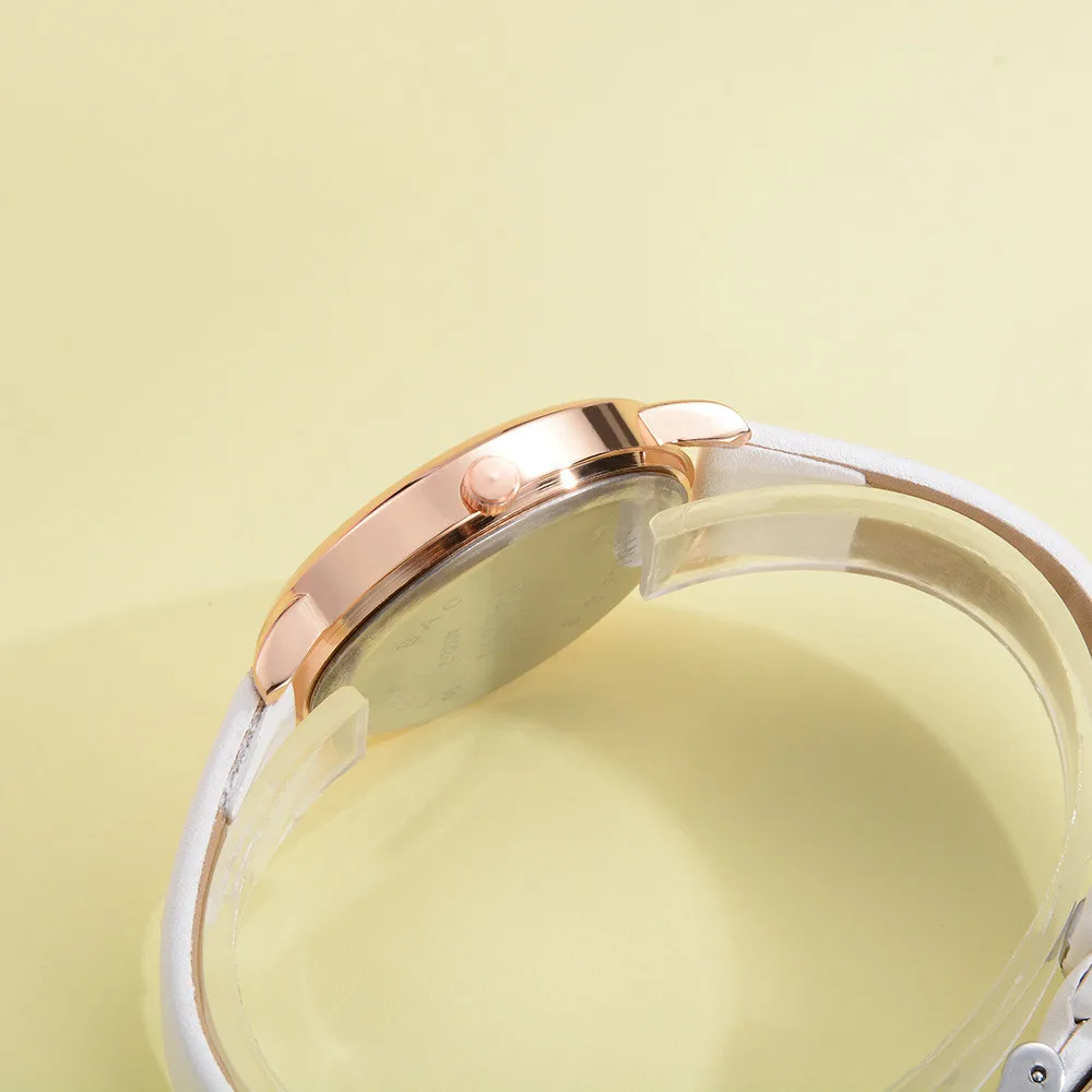 WomEn кожаный ремешок аналоговые кварцевые круглые наручные часы