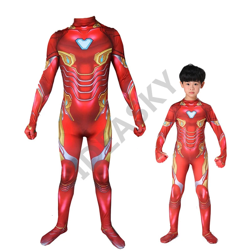 Карнавальный костюм Железного человека для мальчиков, персонажа Тони Старка, костюм Тони Старка из лайкры для взрослых и детей, костюмы зентай из спандекса, костюм Железного человека на молнии