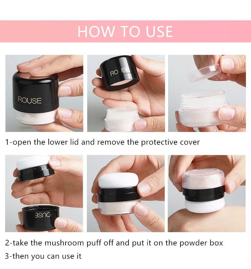 1, порошок очень однородный 2, легко контролировать порошок 3, легко закрепить макияж 4, портативный и удобный