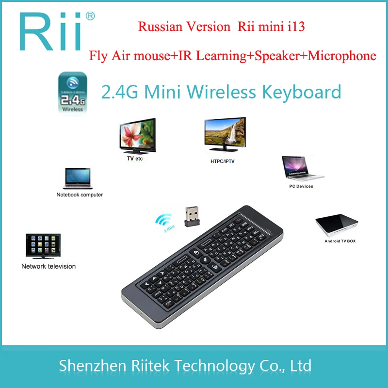 Rii i13 K13 2,4G мини русская Беспроводная Клавиатура Fly Air Mouse Combos Mircophone Speaker IR Remote learning для ПК Smart TV Box