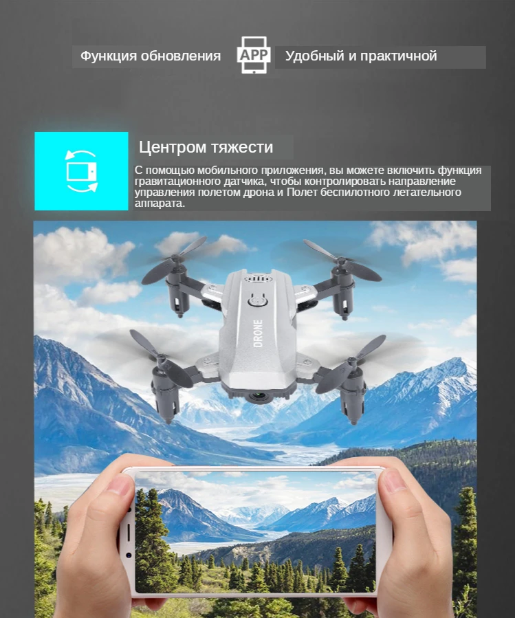 ● С помощью мобильного приложения вы можете включить функцию датчика гравитации для управления направлением дрона и управления полетом дрона